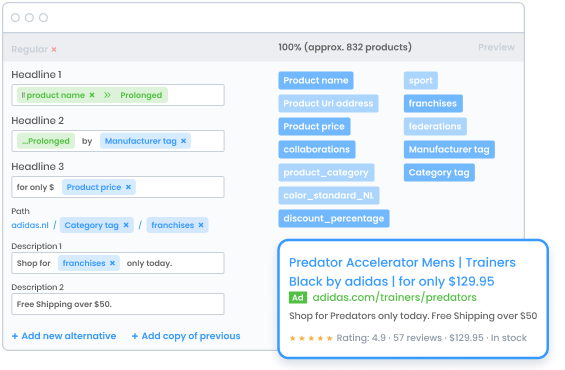 Verwalten Sie alle Ihre Datenfeeds auf einer Plattform. Alle Kanalanforderungen sind vordefiniert, sodass Ihre Datenfeedsautomatisch im richtigen Format generiert werden.