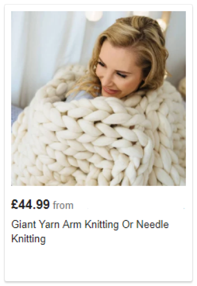 Sie kennen Ihr Produkt zwar sehr gut, denken Sie jedoch daran, dass dies möglicherweise das erste Mal ist, dass ein potenzieller Kunde es sieht. Zum Beispiel ist das Produkt unten eine Kugel aus dickem Garn. Unklar wird dies jedoch durch das bereits zu einer Decke gestrickte Garn: