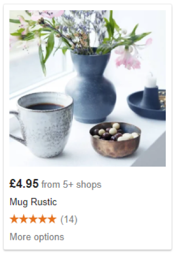 Hier hingegen zeigt das Bild die Tasse selbst vor einem weißen Hintergrund. Damit fällt das Produkt deutlich besser auf.