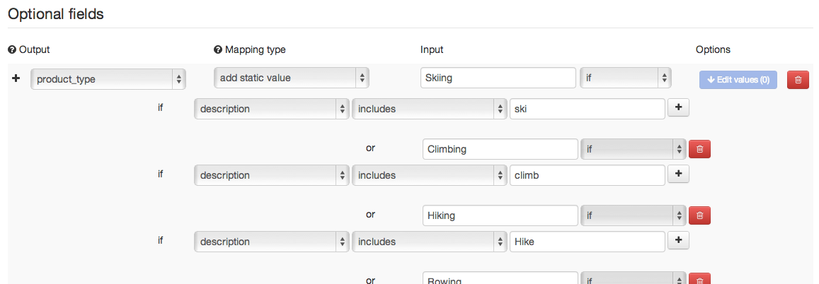 Wir haben seinen Datenfeed einmal schnell überflogen und festgestellt, dass der Produkttyp (es gab 22 verschiedene) in 98% der Fälle in der Beschreibung erwähnt wurde. Das war Larrys Rettung. Mithilfe unserer Datenfeed-Software brauchte er nur zehn Minuten, um 22 Regeln aufzustellen, die den Produkttyp auf der Beschreibung basierend festlegen.